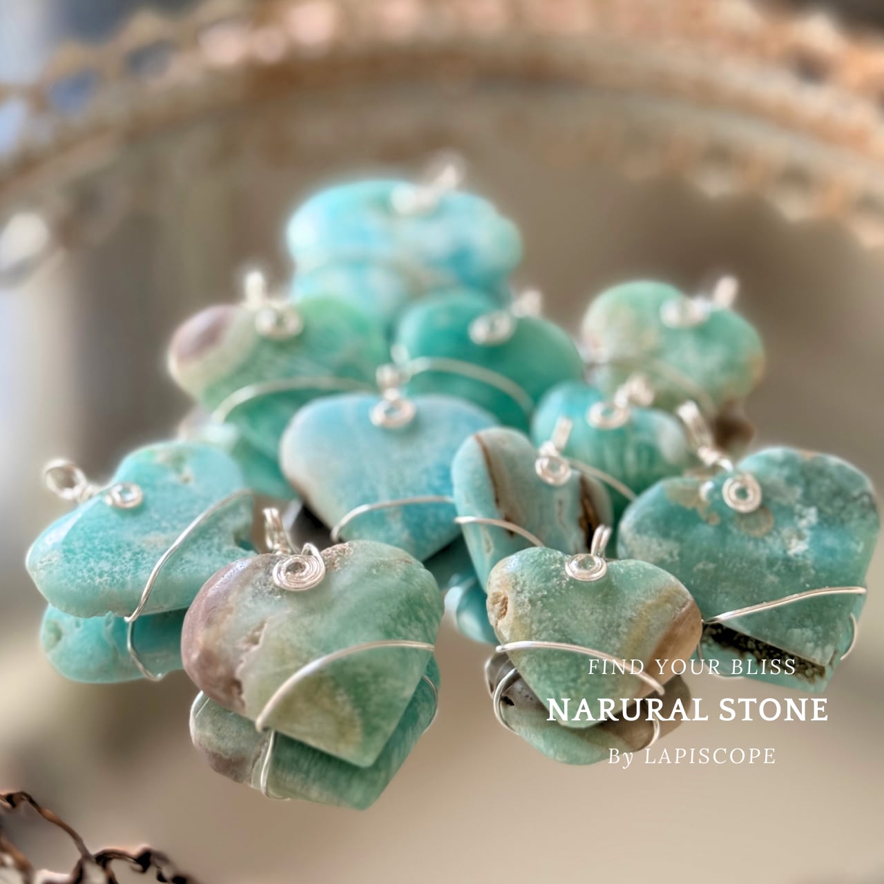 材 質:天然スミソナイト ブルーグリーン ワイヤー加工